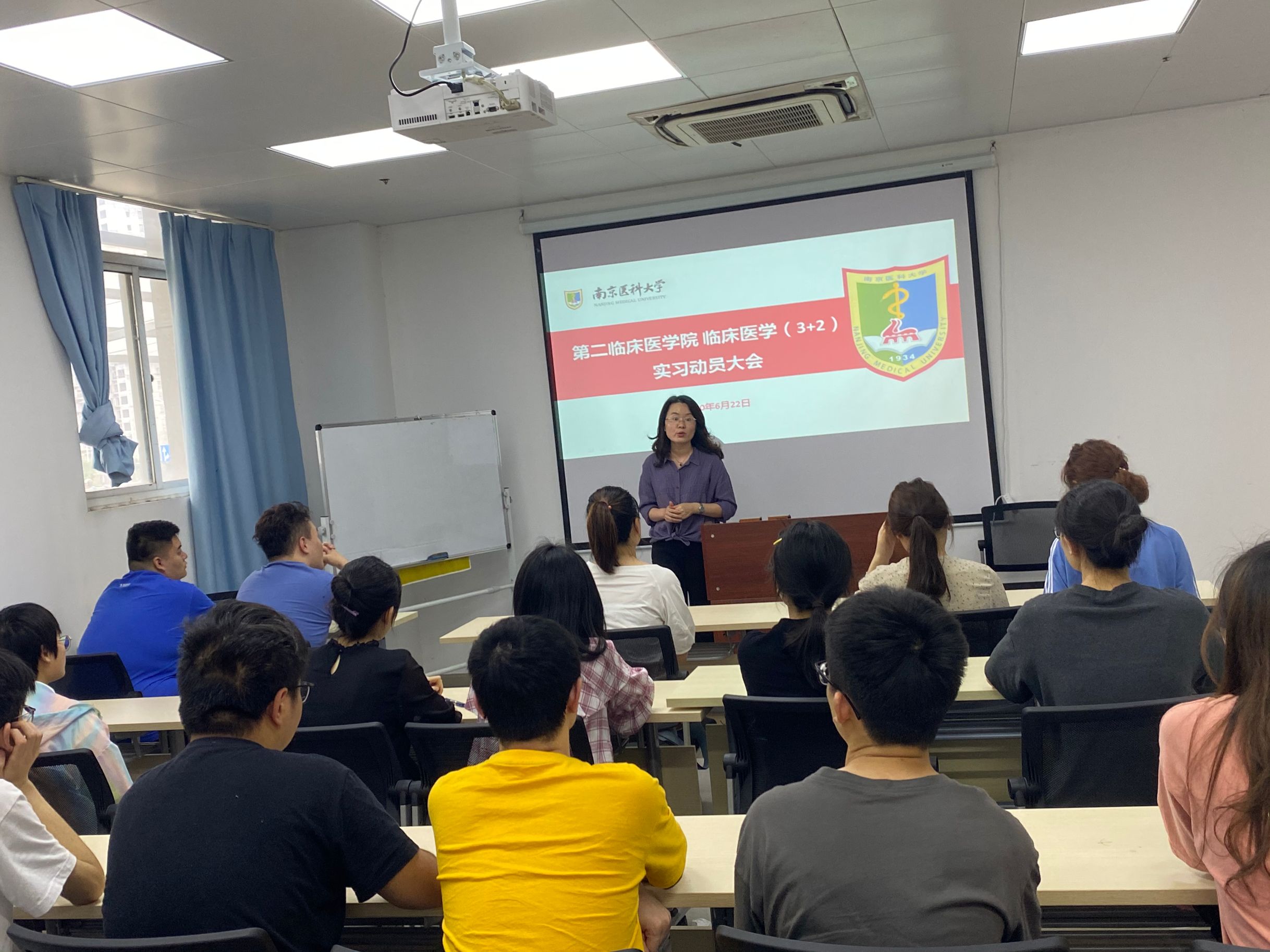 6月22日下午,我院2020级临床医学(3+2)在附属江宁医院教室召开实习动员大会,学院副书记黄辉、辅导员许柯以及临床医学(3+2)全体同学参会。