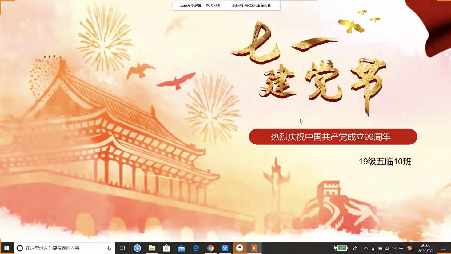 6月30日晚,2019级临床10班全体同学在线上召开了“不忘医者初心,高举党的旗帜”活动。本次活动由团支书孔留成主持。