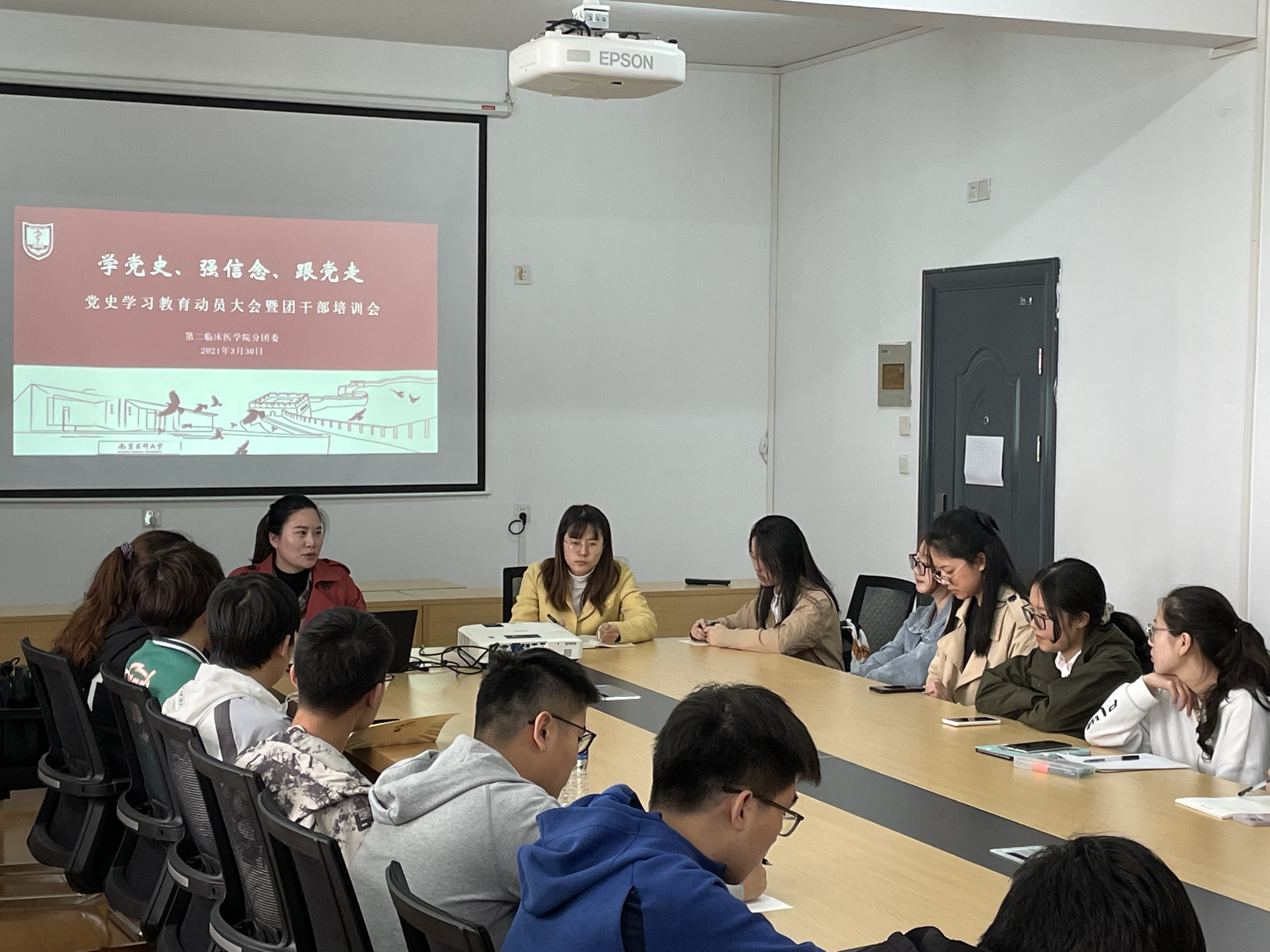 3月30日,第二临床医学院召开“学党史,强信念,跟党走”党史学习动员大会暨团干部培训会,出席本次会议的有辅导员许柯老师和屈杰老师,以及院分团委学生代表和全体团支书。